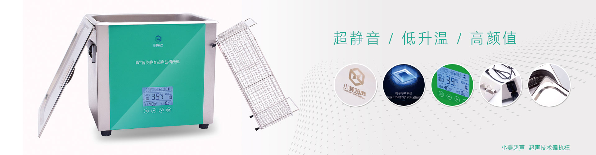 昆山小美超聲-集研發(fā)和生產(chǎn)為一體的超聲波清洗機(jī)、破碎儀、超聲波點(diǎn)焊機(jī)廠家,我們面向全國供應(yīng):小型超聲波清洗器(實(shí)驗(yàn)室/醫(yī)用清洗機(jī)專用)、全自動超聲波清洗設(shè)備。可用于清洗各種電子主板、噴頭、汽車零件、五金、玻璃鏡片、電鍍、模具、精密電路板、蔬菜水果、龍蝦等物件,清洗效果佳,噪音小。根據(jù)客戶需求不同,我們提供各種個(gè)性化定制服務(wù),可定制批發(fā)各類單槽、雙槽、多槽、加熱|過濾系統(tǒng)、機(jī)械式清洗機(jī)。小美清洗機(jī)分為智能靜音、高頻率、低頻率、高功率以及可調(diào)功率系列等,客戶可根據(jù)自己需求來自由選擇。[查看詳細(xì)]